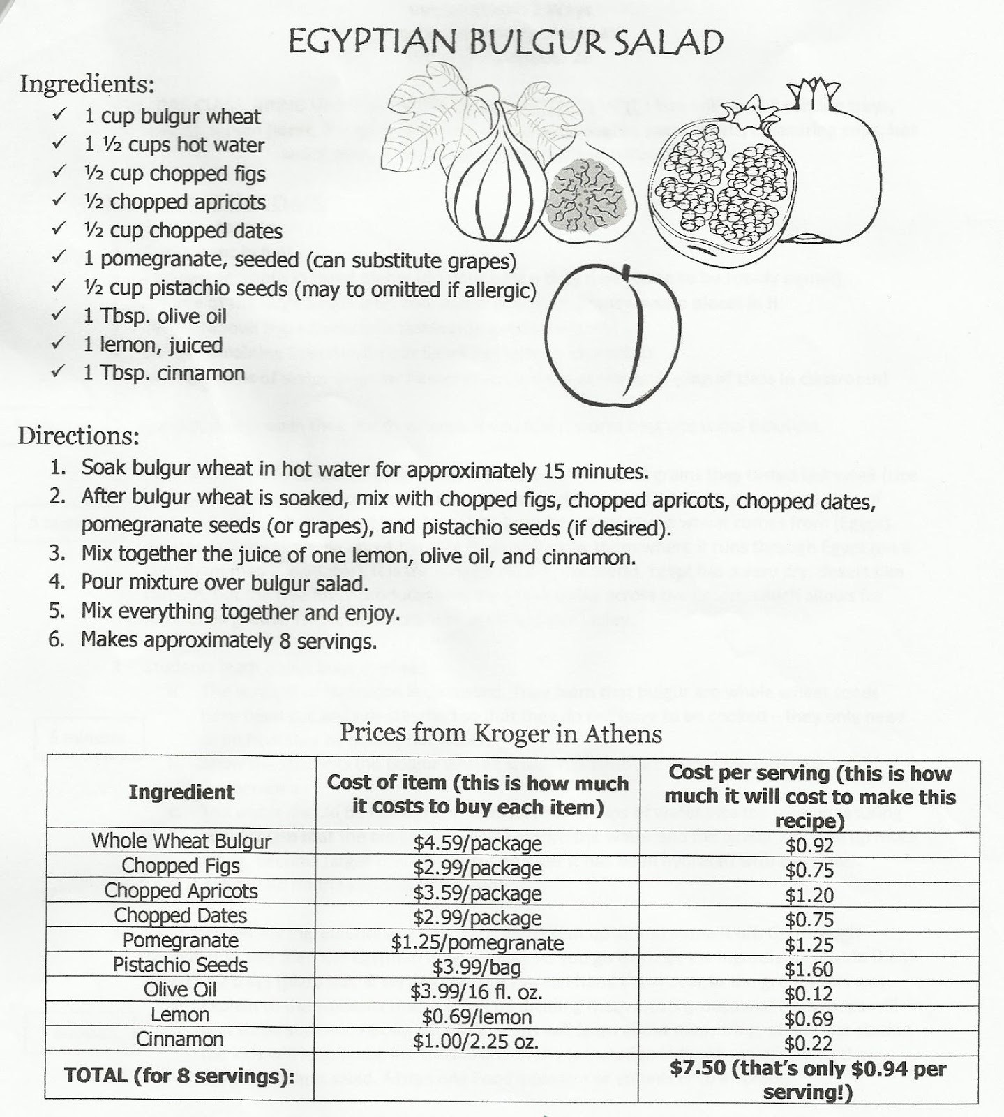 Below I have scanned in the egyptian bulgur salad recipe! I hope everyone is able to enjoy this!